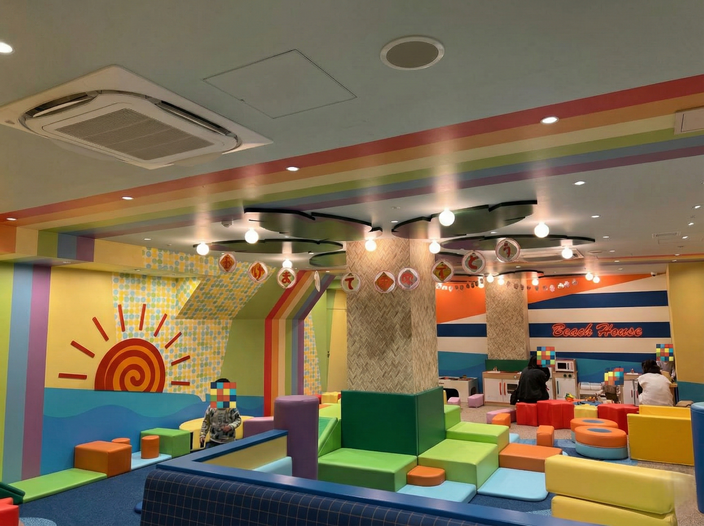 大きな柔らかいブロックやおままごとセットがあり、子供たちはちょうど年末に観たテレビ番組「SASUKE」の真似をしてブロックを渡り歩いて遊んでいました。